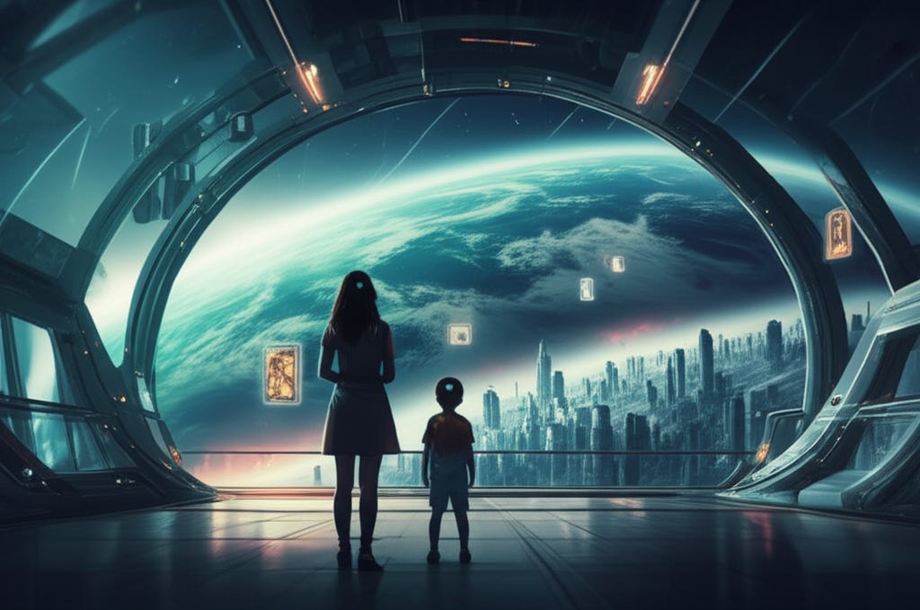 Our favorite placeStrangely, his mom felt she needed to add additional measures on top of the official ones. Dall immediately knew what she meant. As a child, their favorite place was the Tram station platform near their home, where they could look down on the planet. When he entered the station name, the panel disappeared. In its place, his mother’s face appeared frozen - a vid-message. Her apparition, so close to his face, was too much to bear. Dall quickly signaled the recording to display on the wall in front of him. The tears that didn’t come earlier, forced their way now uncontrollably.